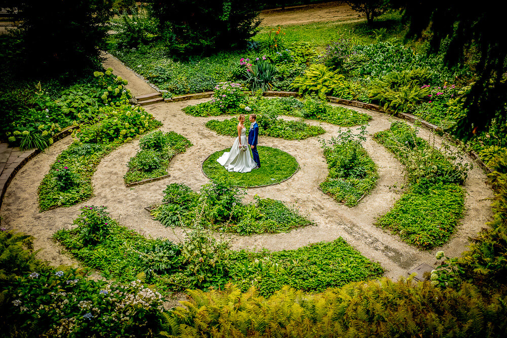 Ja, der weitläufige Park bietet eine traumhafte Kulisse für Hochzeitsfotos. Besonders im Frühling und Sommer entstehen dort sehr natürliche und elegante Bilder.